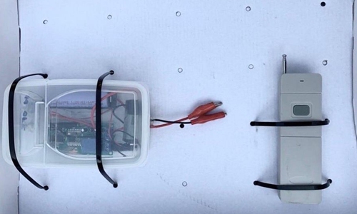 The Hong Kong police show an explosive device seized after three people are arrested suspected of testing explosives with remote controls in Tuen Mun, Dec. 14, 2019. (Xinhua)