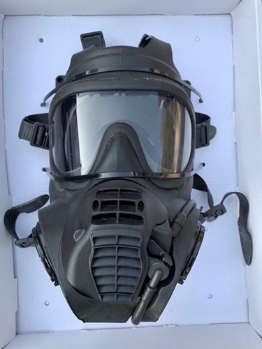 The Hong Kong police show a gas mask seized after three people are arrested suspected of testing explosives with remote controls in Tuen Mun, Dec. 14, 2019. (Xinhua)