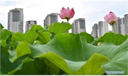 Photo taken on July 9, 2019 shows the lotus flowers at the Jinshan Park in Fuzhou, capital of ...