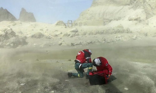 Rescuers land on the White Island after volcanic eruption in New Zealand, Dec 9, 2019. Photo: Xinhua