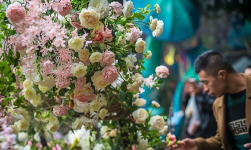 Tourists take photos in the floral greenhouse in the City of Flowers, a gardening complex in Kunming, capital of southwest China's Yunnan Province, Dec. 22, 2019. The City of Flowers, a large-scale gardening complex in Kunming, includes a floral greenhouse, an experimental museum and a 4D media hall in over 60,000 square meters. Photo:Xinhua