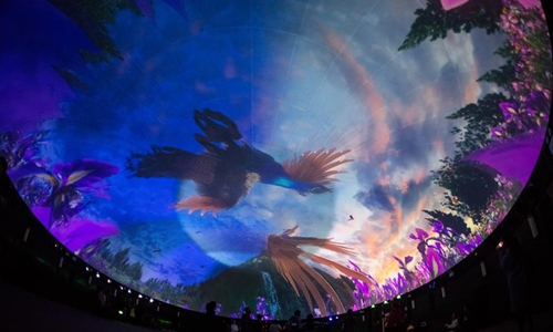 Tourists watch a movie in the 4D media hall in the City of Flowers, a gardening complex in Kunming, capital of southwest China's Yunnan Province, Dec. 22, 2019. The City of Flowers, a large-scale gardening complex in Kunming, includes a floral greenhouse, an experimental museum and a 4D media hall in over 60,000 square meters. Photo:Xinhua