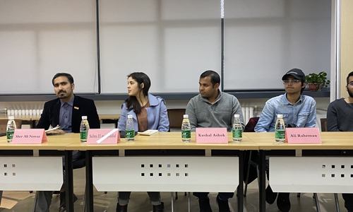 Sher Ali Nawaz (far left) and three foreigners who plan to start their companies talk to media in an accelerator in Xi'an. Photo: Zhang Hui/ GT