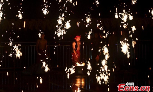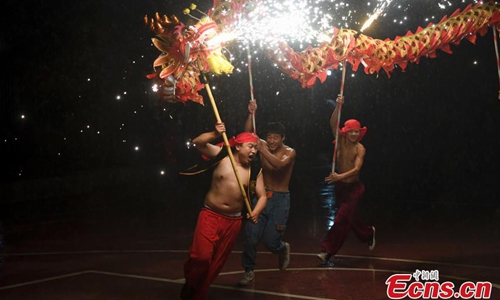 A shower of molten iron sparks like fireworks during a performance at a lantern festival in Changsha, Central China’s Hunan Province, December 24, 2019. With a history of over 1,000 years, the classic molten iron sparks show was recognized as national-level intangible cultural heritage in 2008. Photo: China News Service
