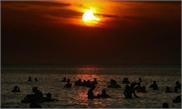 A partial solar eclipse is seen through a dark cloud in the sky of Jakarta, Indonesia, Dec. 26, 2019. (Xinhua/Zulkarnain)