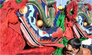 Folk artists rehearse lion dance for the upcoming Chinese Lunar New Year in Yongdeng County, Lanzhou, capital of ...