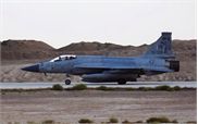 A JF-17 fighter jet attached to the Pakistan Air Force flies towards the designated airspace during an air-to-ground offensive operation drill conducted by two Chinese JH-7 fighter bombers and two Pakistani JF-17 fighter jets on Sept. 20, 2017, which is part of the "Shaheen VI " joint training exercise launched by the air forces of China and Pakistan on Sept. 8 and scheduled to conclude on Sept. 27, 2017. Photo: eng.chinamil.com.cn