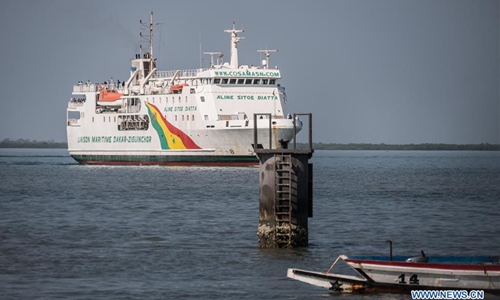 Photo taken on Dec. 29, 2019 shows a ferry sailing between the capital Dakar and Ziguinchor in Casamance, southern Senegal. Senegalese Minister of Tourism and Air Transport Alioune Sarr announced recently that 1.7 million foreign tourists visited Senegal in 2019. Photo:Xinhua