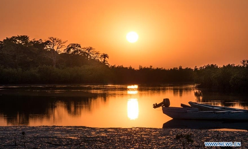 Photo taken on Dec. 27, 2019 shows the sunset near Oussouye, Casamance, southern Senegal. Senegalese Minister of Tourism and Air Transport Alioune Sarr announced recently that 1.7 million foreign tourists visited Senegal in 2019. Photo:Xinhua