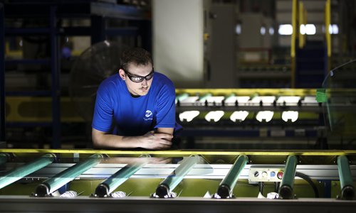 An employee works at the Fuyao Glass America facility in the US city of Moraine, Ohio, on August 21, 2018. Photo: Xinhua
