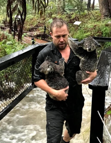 Carrying koalas in their arms keepers waded through knee deep rushing water, while others desperately sandbagged to protect whatever enclosures they could.