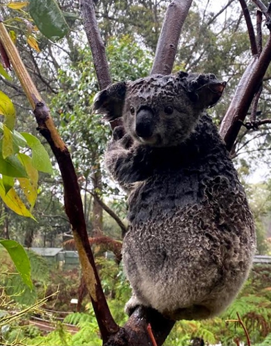 A wet and cold koala at the Australian Reptile Park as the rain arrives. (Photo credit: the Australian Reptile Park)