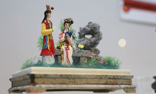 Photo taken on Jan. 17, 2020 shows dough-made figurines of characters in "A Dream of Red Mansions" at the Chinese dough modelling exhibition in Tokyo, Japan. Photo: Xinhua