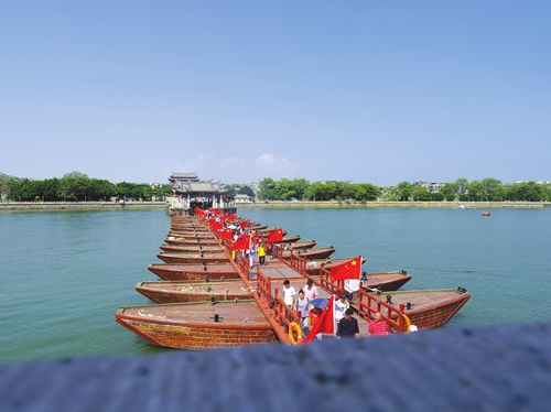 Straddling the Hanjiang River, Guangji Bridge is a combination of beam bridge, arch bridge and bateau bridge, making it one of a kind in the country. A part of the bridge is connected by 18 bateau boats. During the day, people can walk across the river through the bateau bridge. Yet at night, the boats will be disconnected, and there will be a channel for ships and boats to pass by. Moreover, there are 24 distinctly styled pavilions on the bridge, giving people one more reason to take a walk through it.