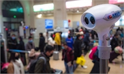 An employee of Wuhan train station in Central China's Hubei Province observes passengers' body temperature on January 21 amid outbreak of the novel coronavirus pneumonia. Photo: China News Service