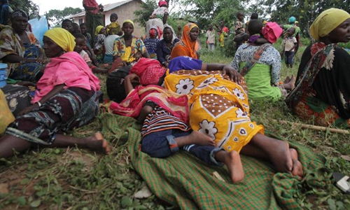 Displaced flood victims are seen after being hit by torrential rains in Njinjo ward, Kilwa district of Lindi region in Tanzania on Jan. 30, 2020. (Xinhua)