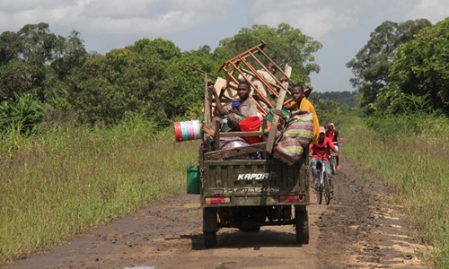 Flood victims ferry their belongings after being hit by torrential rains in Njinjo ward, Kilwa district of Lindi region in Tanzania on Jan. 30, 2020. (Xinhua)