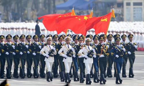 A formation of Guard of Honor takes part in a grand military parade celebrating the 70th anniversary of the founding of the People's Republic of China in Beijing, capital of China, Oct. 1, 2019. (Xinhua/Liu Dawei)