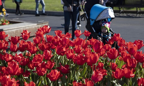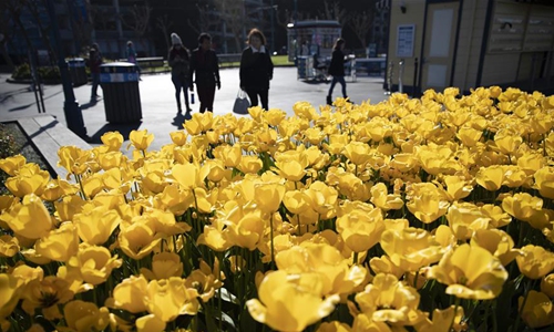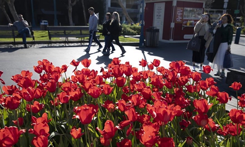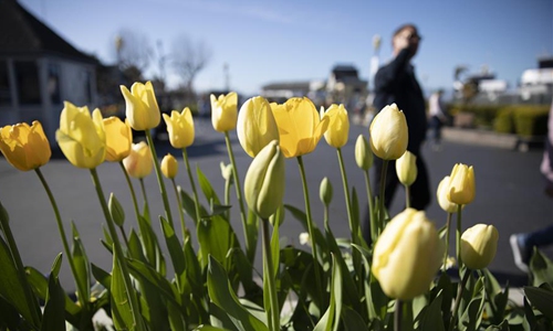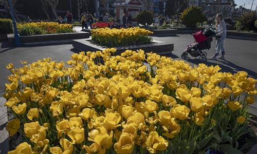 Photo taken on Feb. 12, 2020 shows the blooming tulips at a tulip exhibition in San Francisco, the United States. (Photo by Li Jianguo/Xinhua)
