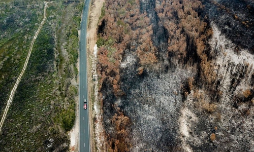 Aerial photo taken on Nov. 11, 2019 shows burnt bushes near Port Macquarie, New South Wales, Australia. (Xinhua/Bai Xuefei)