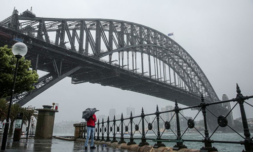 A citizen walks in the rain in Sydney, Australia, on Feb. 9, 2020. (Xinhua/Bai Xuefei)
