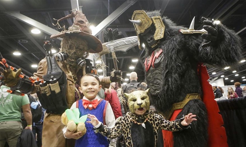 Attendees pose for photos during the Fan Expo at Vancouver Convention and Exhibition Centre in Vancouver, Canada, on Feb. 15, 2020. As one of the largest pop culture conventions in Canada, the Fan Expo draws comic fans, cosplayers, toy vendors, comic book artists and creators to join. (Photo by Liang Sen/Xinhua)