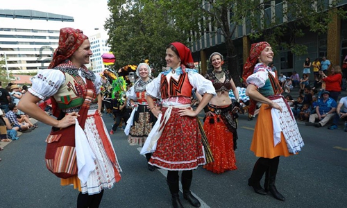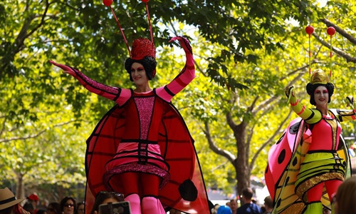 Performers dress as ladybugs at the 2020 National Multicultural Festival in Canberra, Australia, Feb. 22, 2020. The festival, held from Feb. 21 to 23 in Canberra, provided a stage to various cultures around the world and attracted visitors with music, dance performances and delicious food. (Photo by Chu Chen/Xinhua).