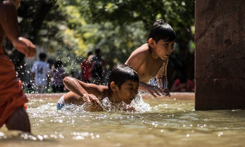 Children play in a pool in Santiago, capital of Chile, on Dec. 14, 2016. (Xinhua/Jorge Villegas)