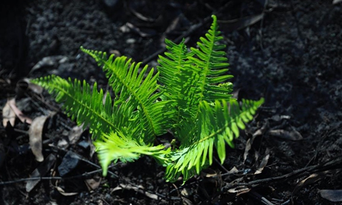 Photo taken on February 27, 2020 shows the sprouting trees that were once charred in the bushfires near Batemans Bay in Australia. Photo: Xinhua