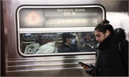 A passenger at a New York City subway train wears a face mask. At least 13 people across New York were infected with coronavirus as of Thursday morning. Photo: Xinhua