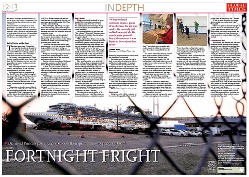 Before the outbreak on the ship, Wong's family already knew the novel coronavirus may spread easily, so they began to wear masks, wash their hands all the time and avoid dining at peak times or joining too many activities.