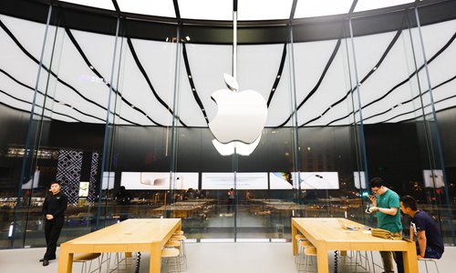 Customers try out iPhones at an Apple store in Nanjing, East China's Jiangsu Province. File photo: VCG