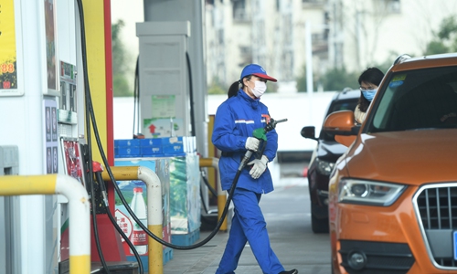 A staff works at a petrol station in Southwest China's Chongqing on Tuesday. Photo: cnsphoto