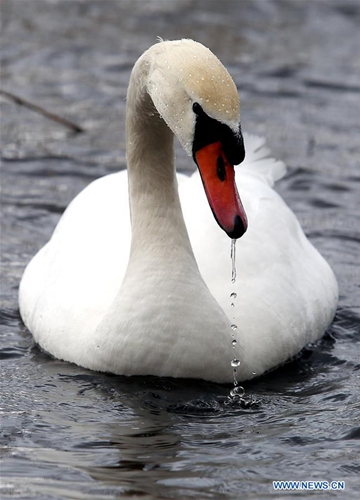 A swan is seen in river Daugava in Riga, Latvia, March 14, 2020. (Photo by Edijs Palens/Xinhua)
