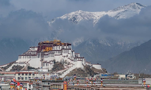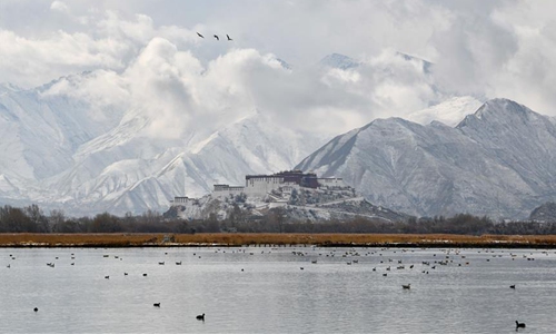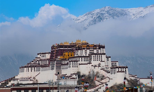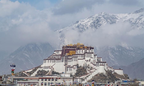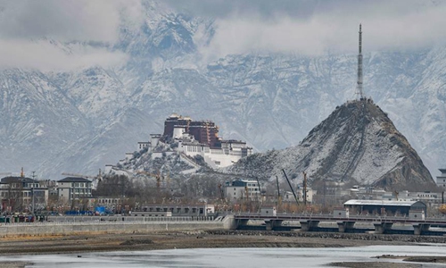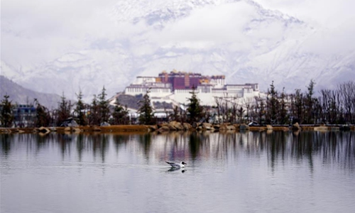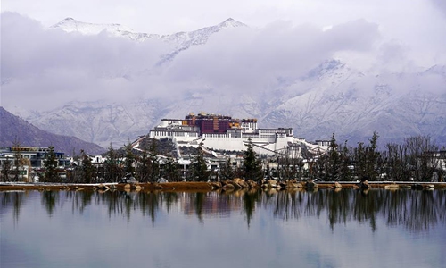 Photo taken on March 19, 2020 shows the Potala Palace after a snowfall in Lhasa, southwest China's Tibet Autonomous Region. The snowfall has improved the soil moisture which is conducive to the ongoing spring sowing. (Xinhua/Zhan Yan)