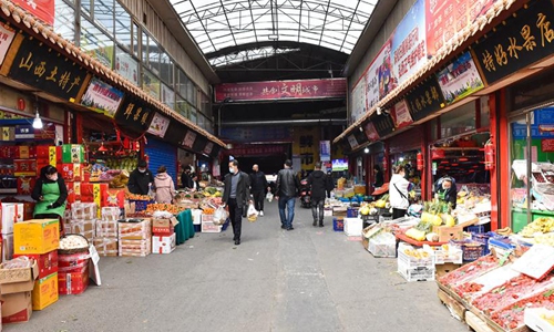 People shop in a market in Taiyuan, north China's Shanxi Province, March 20, 2020. Life and production have gradually resumed here in Taiyuan under strict measures to prevent and control the novel coronavirus epidemic. Photo:Xinhua