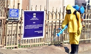 Municipal workers spray disinfectant in Agartala, the capital city of India's northeastern state of Tripura, on March 23, 2020. The number of confirmed COVID-19 cases in India Tuesday rose to 492, India's health ministry said. (Str/Xinhua)
