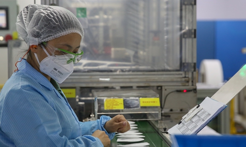 Apart from face masks, 3M also produces pandemic-prevention products like disinfectant and protective gowns in China, and orders for the items have also risen. On Monday, a 3M employee at the protective suit assembly line told the Global Times that he works 12 hours every other day, but he felt that the workload has not changed much over the course of the epidemic.