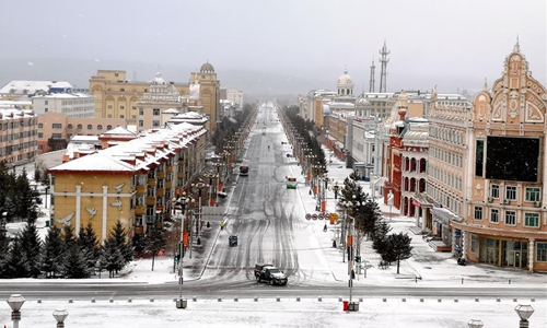 Photo taken on April 19, 2020 shows the snow scenery in Mohe City, northeast China's Heilongjiang Province. A snowfall swept Mohe, China's northernmost city, on Sunday.Photo:Xinhua