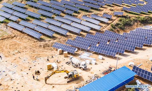 Aerial photo taken on April 26, 2020 shows a photovoltaic power station in Weining County, southwest China's Guizhou Province. (Xinhua/Tao Liang)