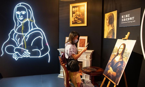 A visitor views a replica of "Mona Lisa" created by Leonardo Da Vinci during an art exhibition titled "Tribute to Da Vinci" at the Changsha IFS in Changsha, central China's Hunan Province, May 4, 2020. (Xinhua/Chen Sihan)