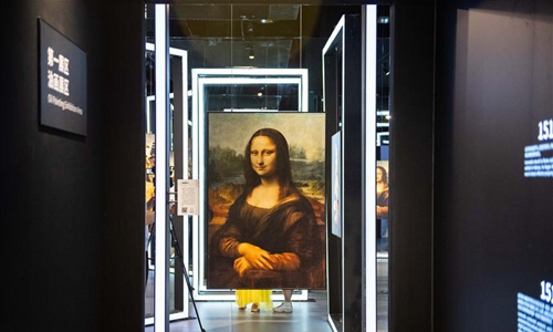 Photo taken on May 4, 2020 shows a replica of the famous painting "Mona Lisa" created by Leonardo Da Vinci during an art exhibition titled "Tribute to Da Vinci" at the Changsha IFS in Changsha, central China's Hunan Province. (Xinhua/Chen Sihan)