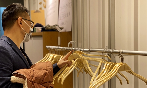 A customer buys clothes hangers at an outlet of ESPRIT in Shanghai on Sunday. The Hong Kongbased retailer is shutting all its stores in the Chinese mainland. The company is reportedly rebooting the brand under the newly formed China JV with the Mulsanne Group. Photo: Chen Xia/GT