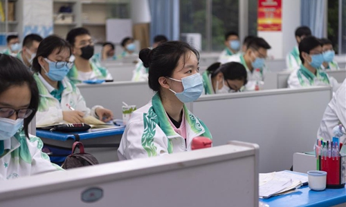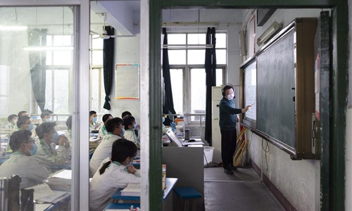 Senior students at No. 4 High School of Xiangyang take a class in Xiangyang City, central China's Hubei Province, on May 7, 2020. Graduating high and vocational school students in Hubei Province returned to schools on Wednesday. (Xinhua/Xie Jianfei)