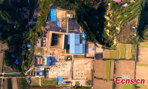 Aerial photo shows the Shuanghuaishu site in central China's Henan Province. Chinese archaeologists announced significant achievements at the Shuanghuaishu site in central China's Henan Province, providing key proof of the origin of the over 5,000-year-long Chinese civilization. (Photo provided to China News Service)
