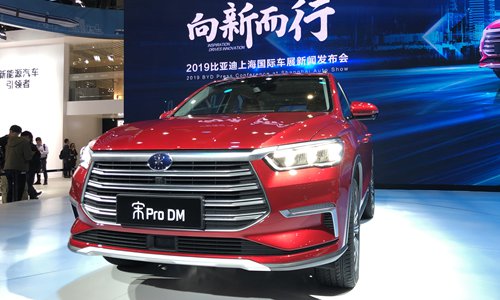 BYD new SUV model Song Pro is launched at the Shanghai Auto Show on Tuesday. Photo: Zhang Hongpei/GT