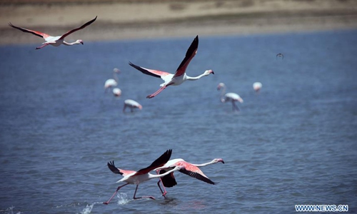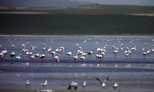 Flamingos are seen at Lake Tuz in Konya, Turkey, on May 12, 2020. (Photo by Mustafa Kaya/Xinhua)