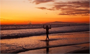 An aerial view of the pedestrian intersection at Hollywood Blvd and Highland Ave during morning rush hour on Monday in Los Angeles, California during the COVID-19 pandemic. Photo: AFP
