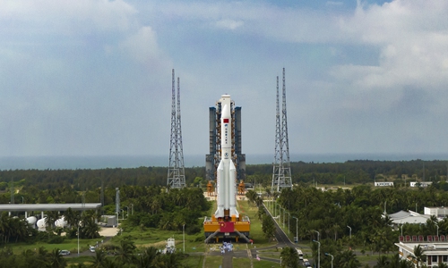 The Long March-5B launch vehicle at Wenchang Space Launch Center on the coast of South China's Hainan Province. Photo: cnsphoto