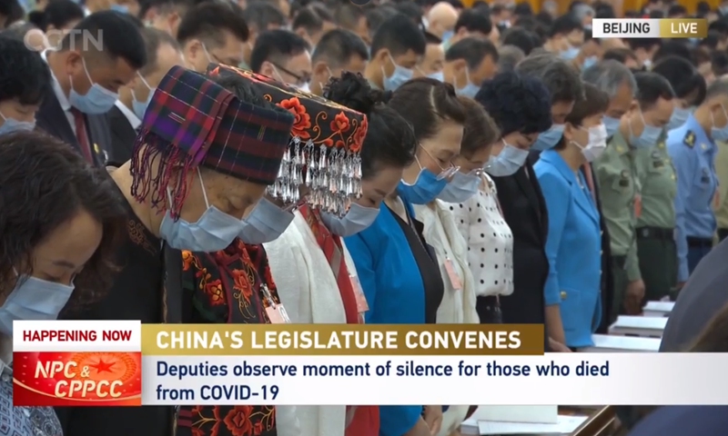 A minute of silence was observed at the opening ceremony of the 3rd session of 13th National People's Congress (NPC) on Friday to mourn the victims of the COVID-19 and those who sacrificed in the fight against the pandemic.